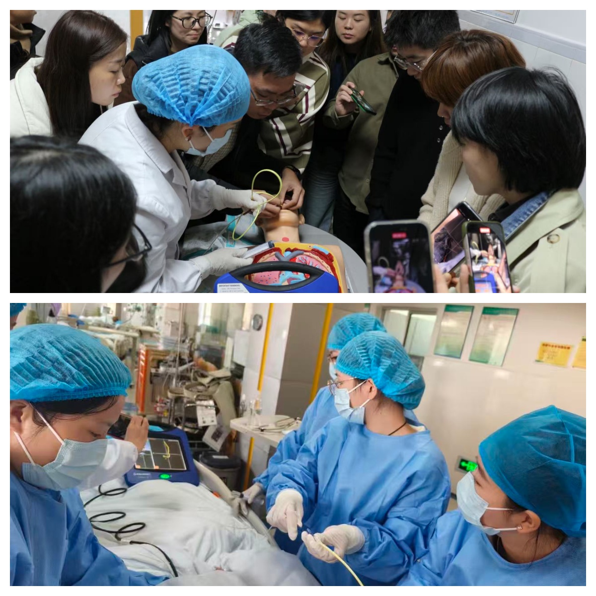 本期授课内容以营养学基础为抓手、以徒手置入鼻空肠管为基础技能,深入到肠内营养通路介绍、磁导航引导下鼻空肠管置入术/可视化鼻空肠管置入术规范化流程、家庭肠内营养、肠内营养制剂的选择等理论知识,同步进行模型操作,再进一步深入病房病例实操,并且再次邀请重症病房的邢伟教授为学员从重症医学医生角度进行重症胰腺炎营养诊疗的经验介绍,还邀请到省人民医院的曾敏婕护士长为学员们深入浅出地介绍了肠内营养管通路维护,从护理角度阐述营养治疗。学员们通过3天扎实的理论联合实操的学习,初步掌握了磁导航引导下鼻空肠管置入术以及可视化鼻空肠管置入术的理论基础和操作流程,每一位学员均在病房实操中顺利且迅速地置入鼻空肠管。