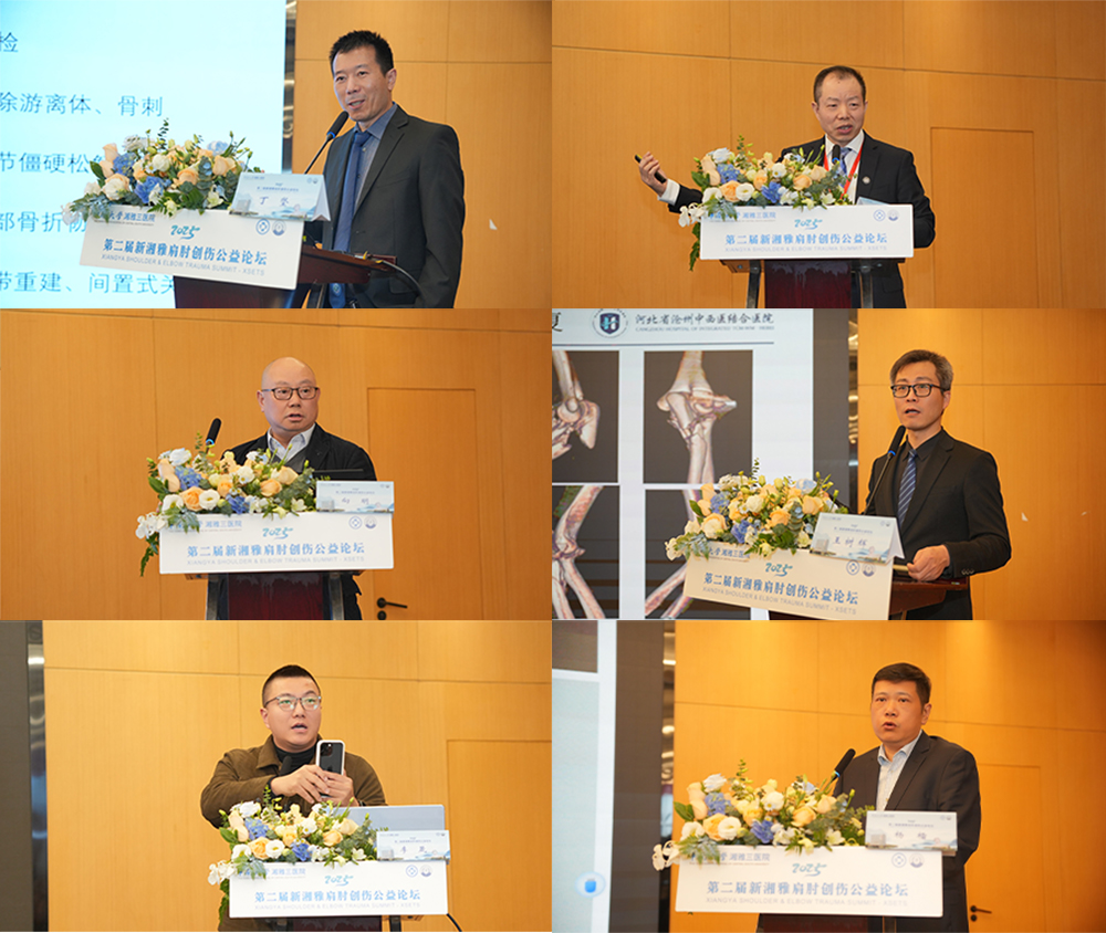 本次公益论坛的“大师讲坛”聚焦“肩肘创伤诊疗进展”,邀请了上海交通大学附属第六人民医院丁坚教授、四川省骨科医院向明教授、中南大学湘雅三医院罗令教授与杨檑教授、河北省沧州中西医结合医院王树辉教授等多位国内肩肘领域知名专家作专题报告。内容涵盖肘关节镜应用、复杂肘关节骨折脱位的分型与治疗、复杂肱骨近端骨折的保肩治疗,以及新湘雅在肩肘关节骨折脱位治疗中的经验总结。湖南卫视编导李晟记者还在现场展示了如何利用手机高效管理临床病例图像档案。中南大学湘雅三医院骨科沈民仁教授、韩利华副教授、刘波副教授担任论坛主持及讨论嘉宾。