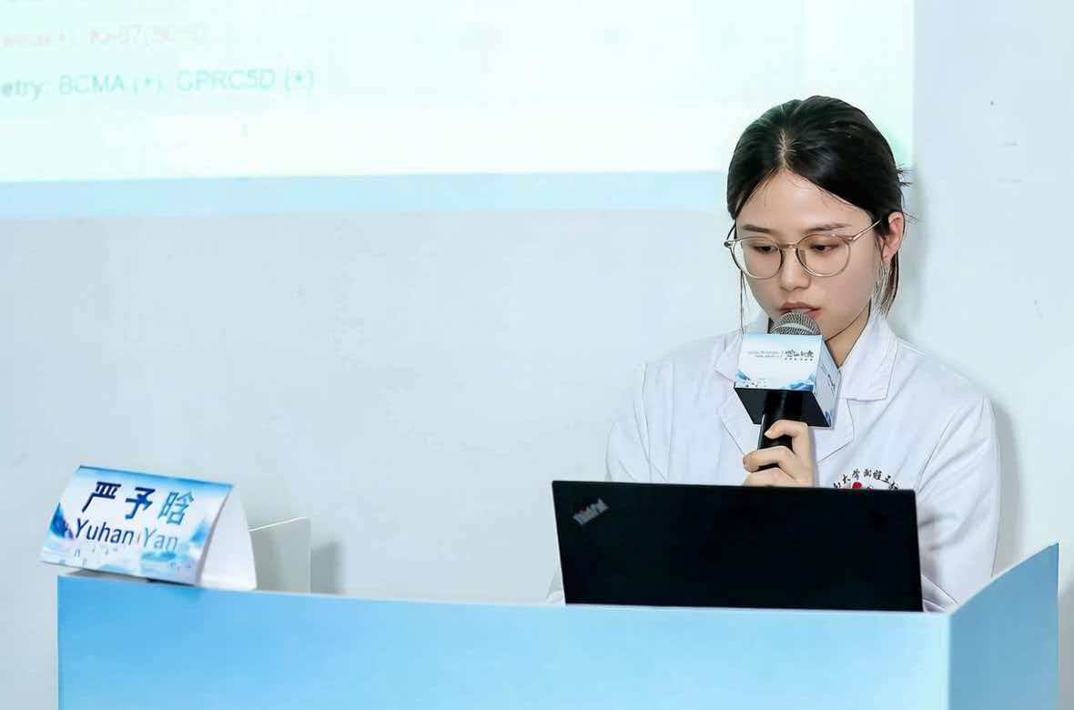 在病例分享环节,血液内科青年医师王礼文和严予晗带来了两个极具代表性的真实病例。两位患者均属于超高危、超难治的多发性骨髓瘤,常规治疗难以控制,多线治疗后仍反复进展。其中一位患者辗转多家外院化疗无效,又在北京接受CAR-T治疗,但仅三个多月便出现髓外复发,腹腔形成巨大包块。转入湘雅三医院后,通过多学科会诊指导取材明确靶抗原,经化疗联合放疗、双特异性抗体序贯治疗,最终获得完全缓解并成功桥接异基因造血干细胞移植,后续以双特异性抗体维持,取得了较长时间的疾病缓解。另一位同样在外省治疗无效,几近放弃时来湘雅三医院就诊,入院时已合并病毒性脑炎及心包、胸水广泛髓外浸润。面对外院束手无策的困境,血液内科实验室通过流式和fish等技术手段迅速明确肿瘤细胞并锚定免疫治疗的靶点。后续采用了双特异性抗体序联用桥接CAR-T细胞治疗等新技术新手段,最终使患者获得良好疗效。这些化不可能为可能的救治案例,充分体现了医院作为湖南省多发性骨髓瘤专病联盟主席单位,无论是在多发性骨髓瘤的诊断,还是在处理超高危、超难治骨髓瘤方面都有非常全面的技术手段以及将先进诊治手段组合运用的实力与担当。