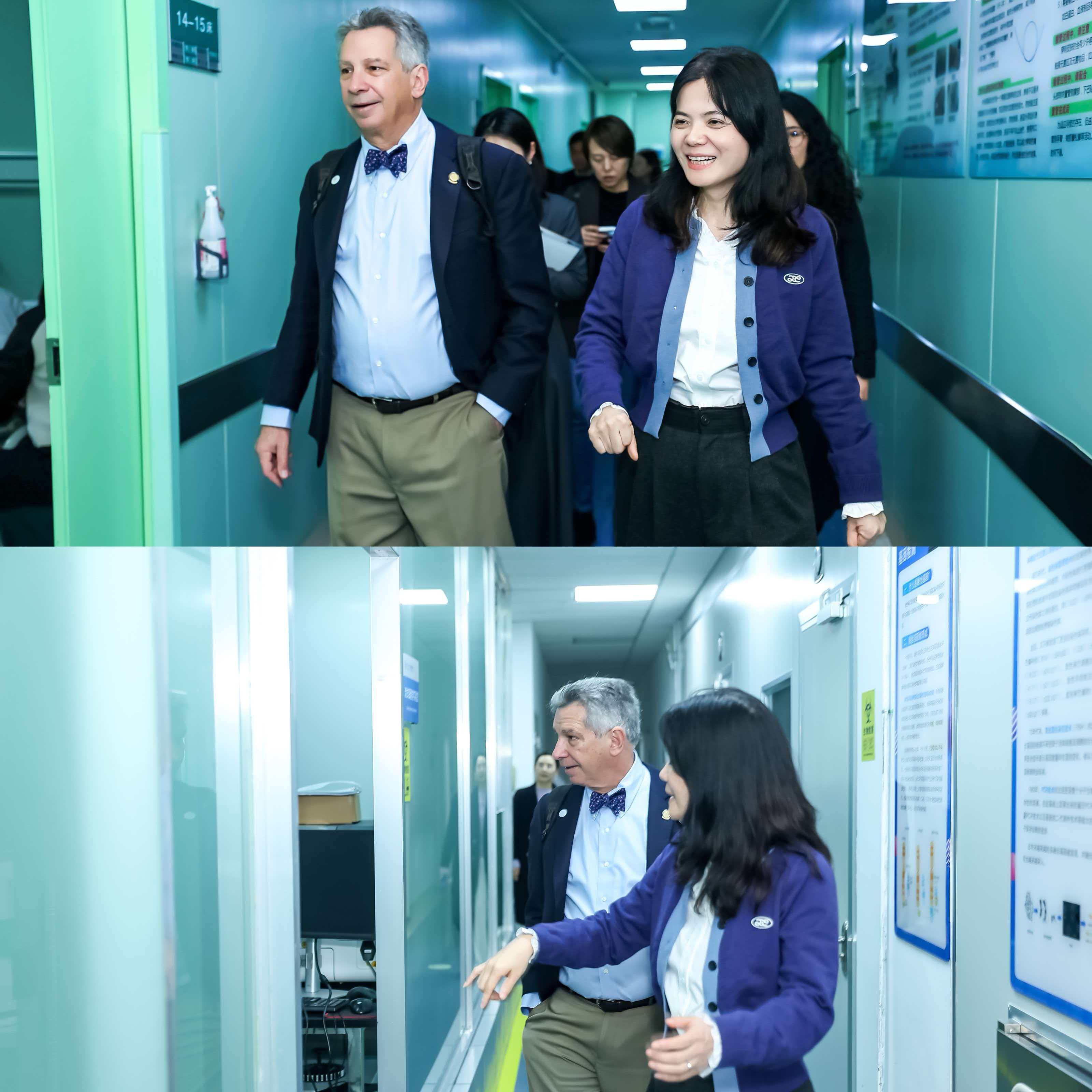 会后,Giralt教授一行来到血液内科二病区以及血液内科实验室参观指导。他对科室在多发性骨髓瘤领域多年积累的成绩给予高度肯定。2014年,刘竞教授牵头成立“湖南省多发性骨髓瘤协作组”以来,科室联合省内30多家血液病诊疗中心,持续致力于推动规范化与同质化诊疗。李昕教授团队2016年在省内率先开展CAR-T细胞治疗,在淋巴浆细胞疾病治疗及感染防控方面持续产出高水平研究成果。实验室作为省内唯一能同时开展二代流式技术和免疫组库测序技术的专科平台,为临床MRD深度检测及CAR-T细胞动力学监测提供了强大技术保障。