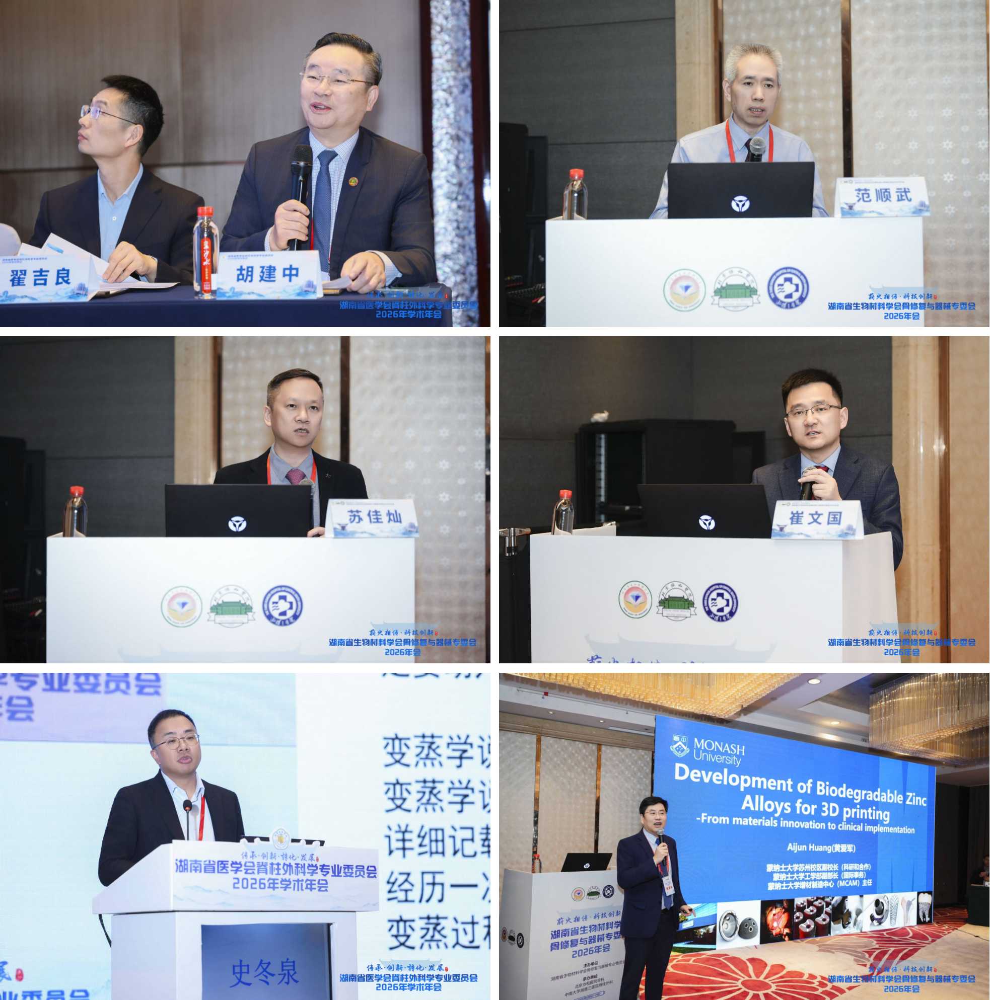 专题报告环节精彩纷呈。来自中国医学科学院北京协和医院、南京鼓楼医院(南京大学医学院附属鼓楼医院)、中国人民解放军总医院、北京大学第一医院、北京大学人民医院、北京大学第三医院;首都医科大学附属北京积水潭医院、首都医科大学附属北京朝阳医院、首都医科大学附属北京友谊医院、山东大学齐鲁第二医院、海军军医大学第二附属医院(上海长征医院)、上海市第六人民医院、上海交通大学附属新华医院、山东大学齐鲁医院、四川大学华西医院、浙江大学医学院附属邵逸夫医院、浙江大学医学院附属第二医院,青岛大学附属医院、华中科技大学同济医学院附属协和医院、郑州大学第一附属医院、南方医科大学南方医院、陆军军医大学第一附属医院(西南医院)、陆军军医大学第二附属医院(重庆新桥医院)等60余位专家教授,分别围绕脊柱肿瘤、脊柱畸形、脊柱微创、颈椎外科、骨质疏松、人工智能应用、骨修复材料、3D打印、基因编辑与临床医学深度结合、临床转化等方向做学术报告。报告内容既有前沿理论探索,也有临床实践经验,充分展示了脊柱外科领域的最新研究成果与技术进展。
