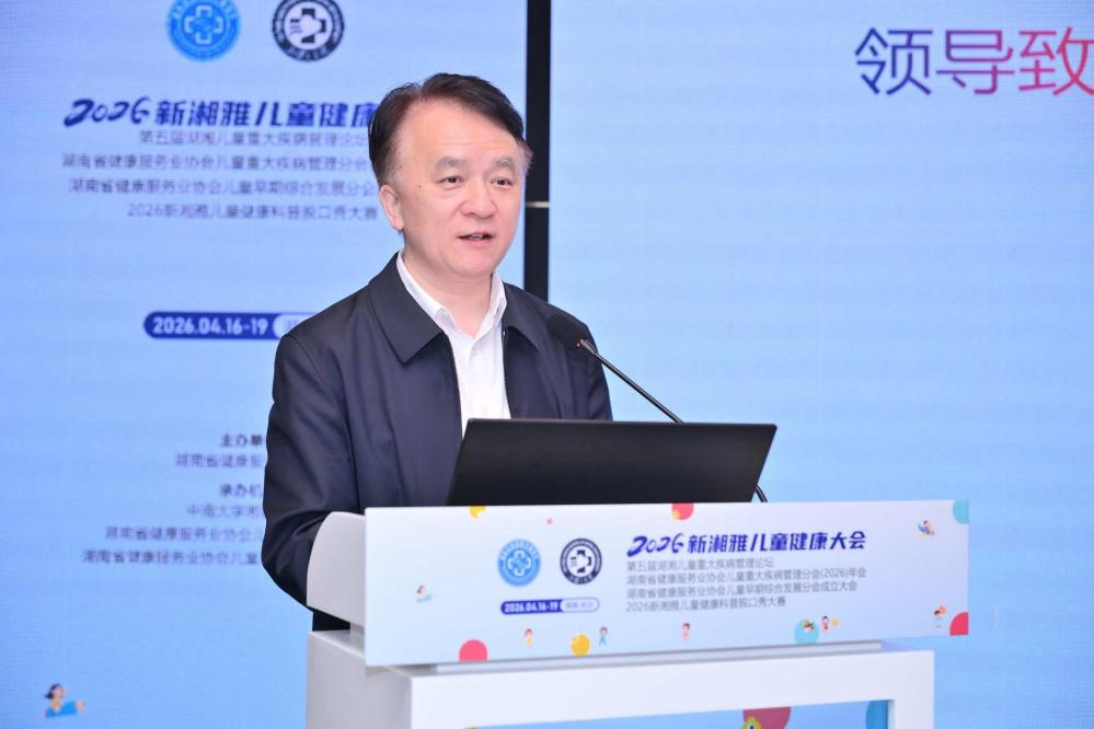 4月16日至19日,2026新湘雅儿童健康大会、第五届湖湘儿童重大疾病管理论坛暨湖南省健康服务业协会儿童重大疾病管理分会(2026)年会在长沙举行。本次大会由湖南省健康服务业协会主办,中南大学湘雅三医院、湖南省健康服务业协会儿童重大疾病管理分会联合承办,同步举办全国卫生产业企业管理协会儿童健康分会成立大会及湖南省健康服务业协会儿童早期综合发展分会成立大会,为全省儿科领域搭建起高水平、多学科、实用性的学术交流平台。大会吸引了国内500余名儿科医护工作者参会,聚焦儿童重大疾病诊疗、儿童健康管理与学科发展前沿。
