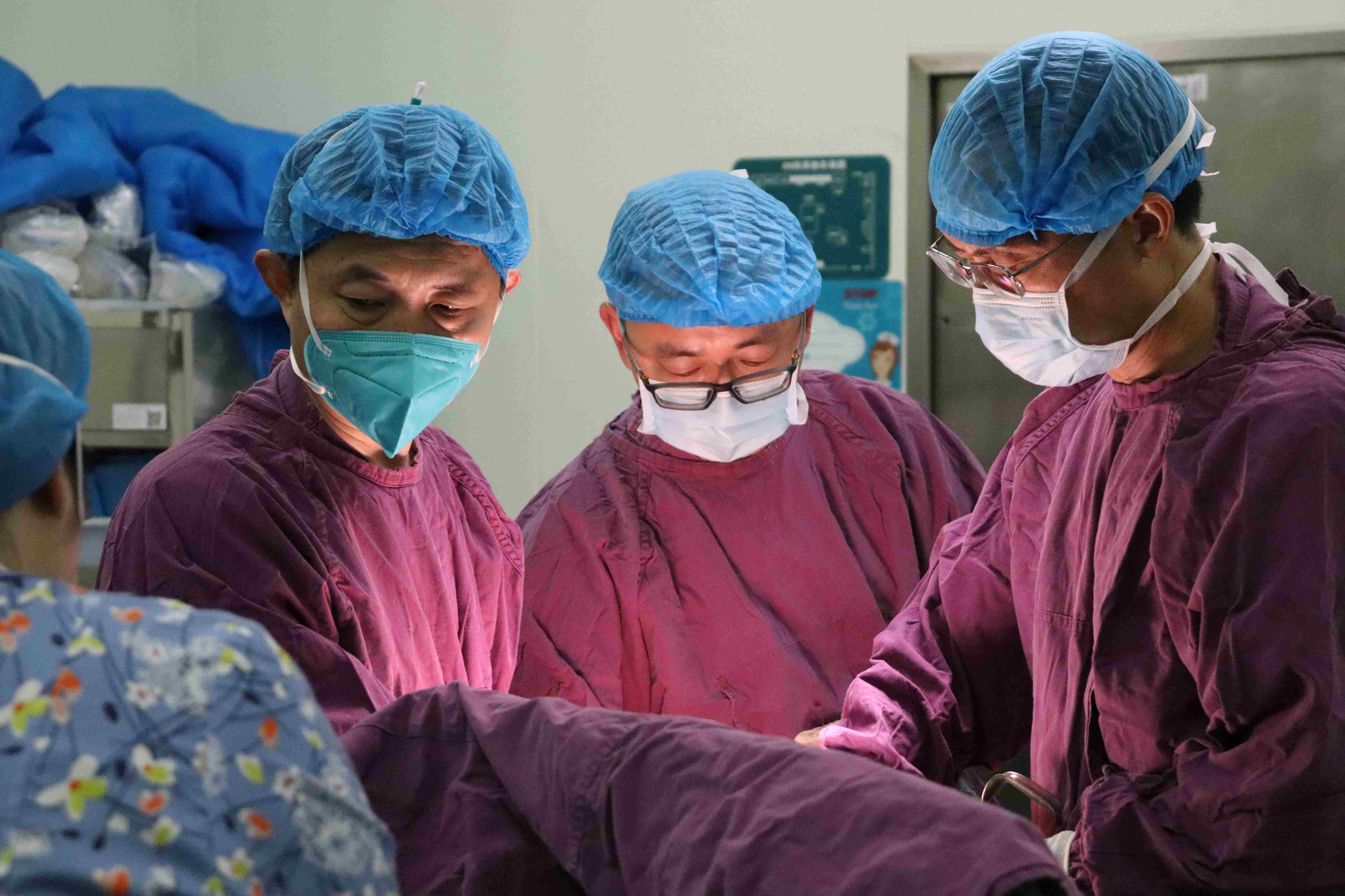中午11点50,李伟正(中)又投入到紧张的手术中。