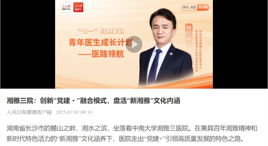 [下一篇] 人民日报客户端:湘雅三院:创新“党建﹢”...