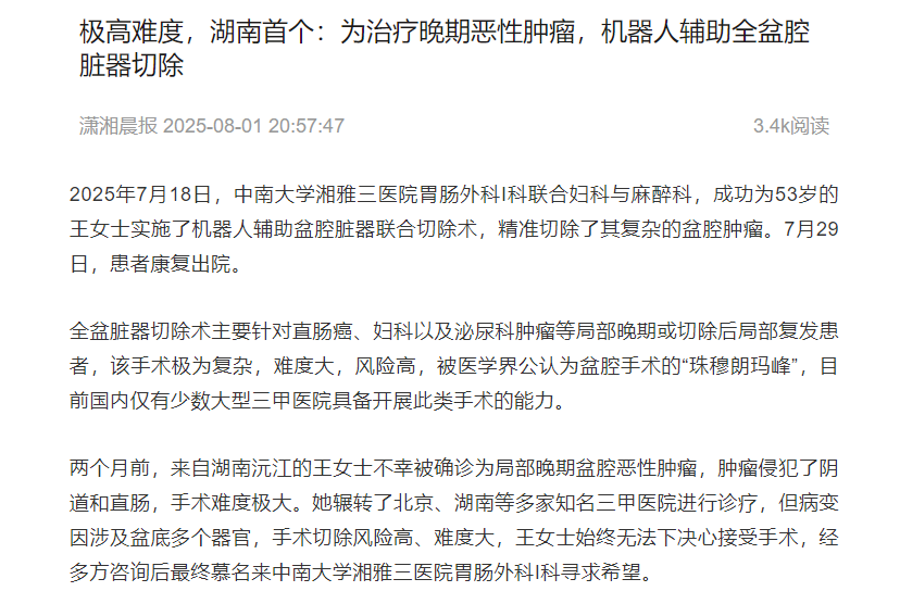 [上一篇] 红网时刻客户端:机器人辅助!盆腔脏器联合...