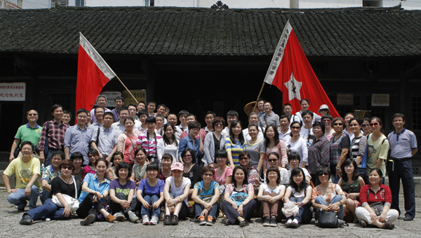 大家还参观了中国工农红军第四军校旧址。大门封火墙上至今还保留着红军时期的一幅标语——“提高战术素养,巩固思想一致”。当年红二、六军团在此开展了广泛的教育运动,特别注重红军教育、干部教育。该校在提高部队素质方面起了顶梁柱的作用,先后培养了1500多名师、团、营、连级军事干部,为后来的抗日战争和解放战争输送了德才兼备、又红又专的军事人才,到1955年共和国授衔时,从这里走出的将军就有166位。