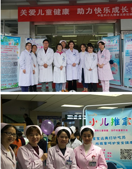 活动现场气氛十分热烈,来义诊室的宝贝们络绎不绝,家长们自觉地排起了长长的候诊队伍。肖岚副教授、朱宏博士、张婷博士给宝宝们免费诊查,给家长们传授传统中医育儿保健知识,易春艳技师、郑一娜技师、康宁技师给宝宝现场进行小儿推拿,并教授家长们一些简单易行的中医推拿保健手法。儿科护士长蔡骞和中医科护士长管彬带领护士姐妹们,维持现场次序,发放免费资料,为了缓解宝贝候诊及诊疗过程中的焦虑情绪,还给宝贝们准备了精美的小礼物。