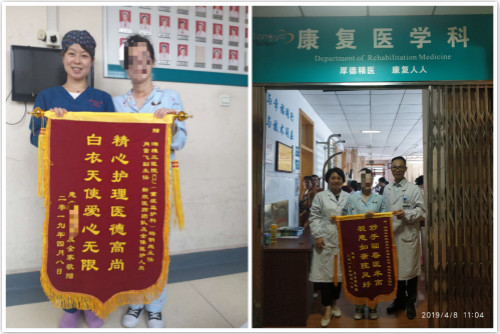 4月8日,痊愈出院的姗姗给ICU和康复医学科送来锦旗以表示感激之情。