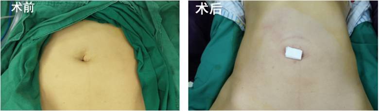 该例手术患者48岁,5年前因“卵巢畸胎瘤”在外院行单孔腹腔镜下畸胎瘤剥除术,本次因“子宫腺肌症并子宫肌瘤”入院,患者提出了再次进行单孔手术的意愿。曾飞主任医师团队认真评估患者病情,经过充分的术前准备、手术规划,于5月7日在全麻下顺利完成了 “达芬奇”机器人单孔腹腔镜下全子宫及双侧输卵管切除术。手术时,曾飞主任医师在患者肚脐开一个3cm横形切口,手术历时40分钟,术中几乎达“零出血”,术后伤口美观,达到了无痕的效果。