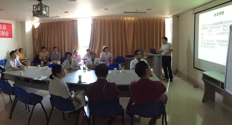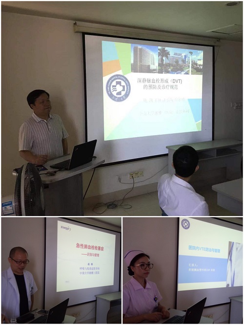 8月14日下午,为积极推行医院静脉血栓栓塞症(VTE)筛查与防治工作的开展,进一步提升高危科室医务人员对VTE的认知和防治能力、规范科室的VTE管理,中南大学湘雅三医院医务部及医院VTE防治工作小组在耳鼻喉科开展了高危科室VTE防治专题培训,血管外科副教授姚凯、呼吸与危重症医学科主治医师张强、肝胆胰血管外科护士长邓琛应邀授课,耳鼻喉科全体医护人员参加了此次培训。