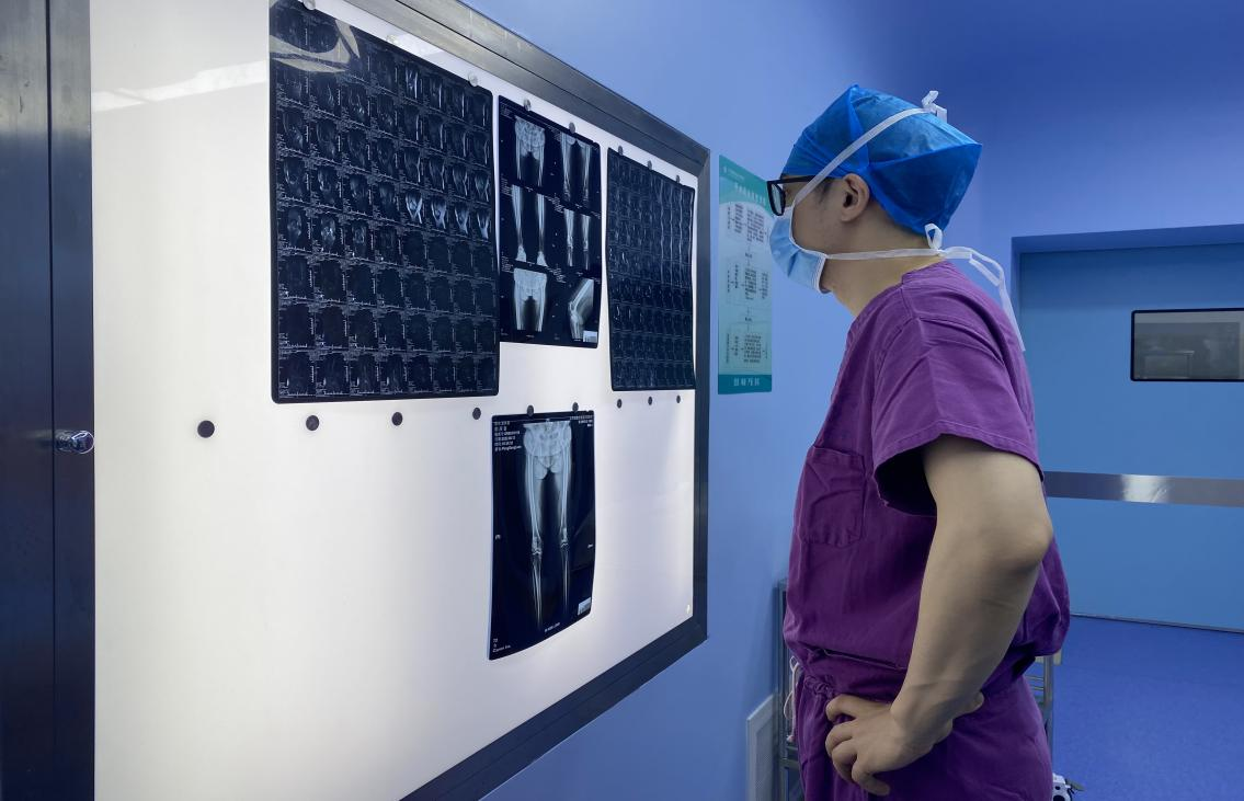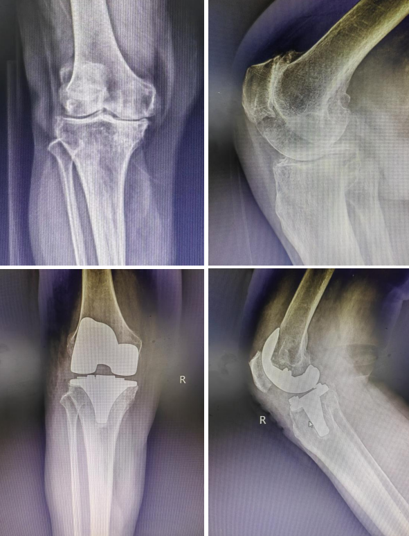 患者张女士,永州江华县人,右膝关节疼痛多年,走路活动严重受限,曾到多家医院就诊治疗,效果不佳。今年6月,曹旭博士入驻江华县人民医院后,对张女士进行仔细的体格检查和影像学资料的复习。在完善了术前准备后,于今年6月底为患者实施了右侧全膝关节置换术。手术过程十分顺利,患者术后第二天就可下床在助行器的帮助下行走。张女士和家人术后表示,现在遇上了一个好时代,国家带来这么好的福利,又遇上湘雅三医院专家帮扶,真的是太幸运了。