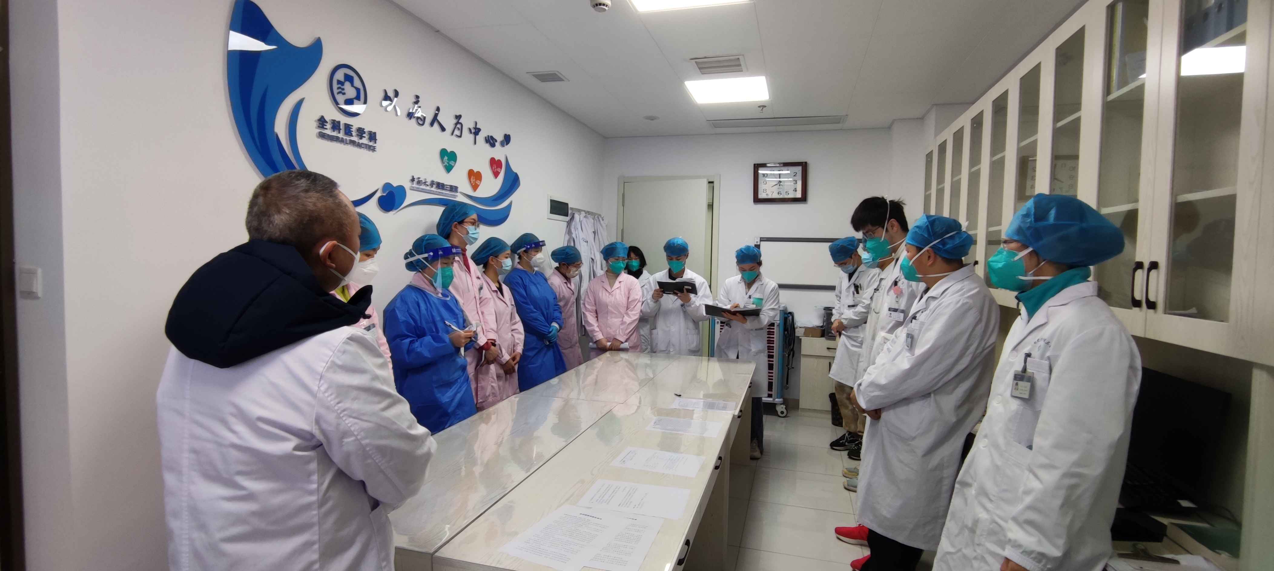 作为居民健康的一线守门人,全科医学科的医护们在先前的新冠感染高峰中已经陆续感染了新冠病毒,大部分住院医师不过刚刚退烧,又返回到工作岗位;谭喜庆主治医师怀孕7月余仍在坚守岗位;在最困难的时候全科护士仅余2人倒班。全科医学科主任范自力教授为了患者的安危,拖着病体返回临床,主动接管39病室内分泌科的26张床位,并向医院主动请缨,将整个39病室转为新冠病毒感染专科病房,以保障新冠感染与重症高峰下爆满的急诊患者的收住与救治。