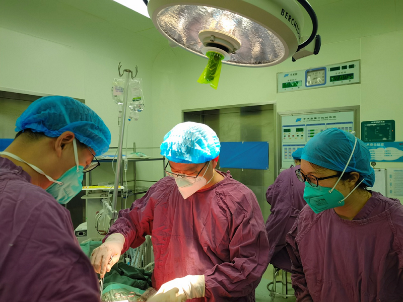 3号当天,由程春霞副教授、龙买连主治医师、伍文总住院医师组成的产科团队为孕妇实施了剖宫产术,于19时49分娩出一活男婴,重1270g,新生儿哭声响亮,评分好,随即转入新生儿科。随后,由胃肠外科II科杨湘武医师及其团队继续探查腹腔,见盆腹腔广泛粘连,腹腔内较多黄白色脓性液体,小肠有一处肠壁呈灰白色,并可见破口及腐烂的青菜叶子等异物,分离粘连,行部分小肠切除并肠吻合术,手术顺利,术毕安返病房,现病情较为平稳。