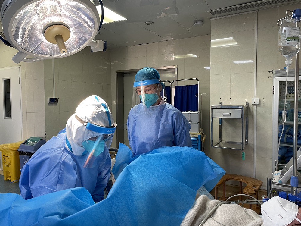 科里的医务人员也先后感染了新冠病毒,高热、全身酸痛、乏力、咳嗽等症状伴随着他们,但他们几乎没休息,只要不高热,就能顶着不适坚守岗位。程春霞教授自己身体不适,穿着防护服给患者手术后一身已经湿透。产房是产科的坚守根据地,近期的分娩量不减反增,产房的医护们不分昼夜守护着希望的新生。那些发烧的助产士,高热期一过就主动申请返岗。
