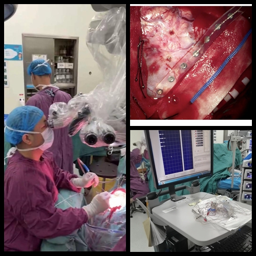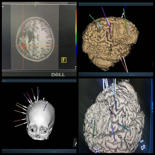 经癫痫中心多学科团队反复讨论,首先为小欣实施了SEEG手术(立体定向脑电图)通过立体定向技术将直径为0.8 mm的电极置入脑内来分析癫痫患者放电情况,从而定位致痫区或致痫网络来指导癫痫外科手术切除方案。同时,还能通过mapping技术,了解致痫区与功能区的关系。