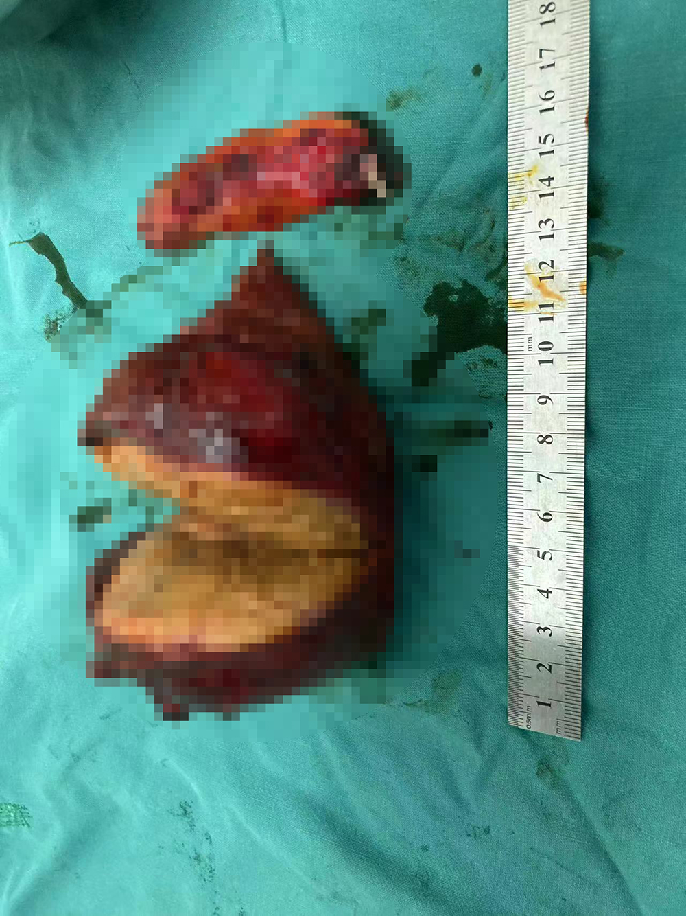 85岁高龄患者周某,江西人,10月24日体检时发现肝脏肿瘤巨大占位,几乎占据全右肝。患者慕名来到湘雅三医院肝胆胰I门脉高压外科就诊。张玉平副教授详细了解病人的病情,进行了全面术前评估。因患者高龄、基础疾病多,多个器官存在不同程度功能减退,MODT会诊认为患者手术风险颇高。且患者既往曾感染乙肝,肝脏存在一定程度肝硬化,肿瘤大,紧邻重要血管,若行腹腔镜微创手术难度极大。科主任罗宏武教授和张玉平副教授组织了全科大会诊,会上各位专家充分评估各种潜在手术风险,拟定了全面而且细致的手术方案。