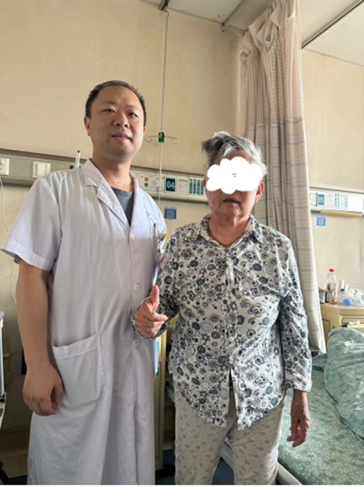 团队在术前联合麻醉科专家对老人的身体状况进行了全面细致的评估,精心制定了个性化的手术方案,以确保手术的安全性和有效性。手术过程中,手术团队和麻醉团队通力合作,操作精准、沉稳,每一个步骤都格外谨慎。最终仅用了1个小时,就成功完成了手术。“不痛了,一点都不痛了。手术后第二天,蒋奶奶就握着杨靓的手激动地分享她的快乐。