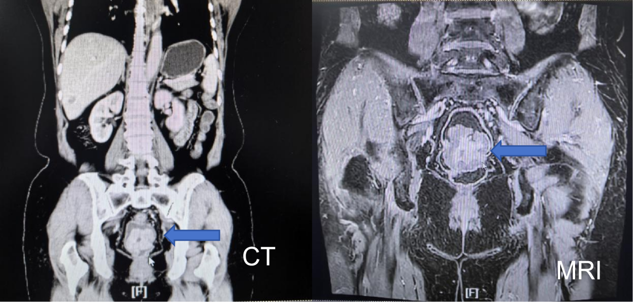 转至胃肠外科二病区后,病区医护立即为患者启动全面术前评估:全腹部增强CT显示直肠局部团块影符合腺瘤改变,同时伴子宫后壁肌瘤伴钙化;MRI检查进一步提示直肠中段肿块,考虑直肠绒毛状管状腺瘤伴癌变T3N1,CRM(+),EMV(+),且合并子宫多发肌瘤。然而,核心的恶性肿瘤诊断却遭遇瓶颈——再次、三次行肠镜下大块、深挖活检后,仍未能明确确诊。诊断的不确定性、直肠病变与子宫肌瘤的合并存在,让诊疗方案的选择陷入两难。