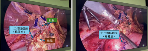 2025年11月12日,患者因“黑便3日”经急诊收住医院消化内科病区,血色素降低至5g,病情危重。王晓艳主任团队接诊后,立即开始针对消化道出血的内科及支持治疗,急诊完善影像学及胃镜检查,确定病因为十二指肠降段肿瘤合并消化道大出血导致失血性休克,经积极内科保守治疗,出血停止,消化内科王晓艳主任高度重视,立即组织了疑难病多学科讨论(MDT)。肿瘤虽然不大,但是位置刁钻,压迫胆管、紧贴胰头,位于十二指肠降段内侧壁,合并大出血,治疗难度极大,胃肠外科二病区朱利勇教授、李伟正副教授、消化内科主任王晓艳教授、刘芬副教授、肝胆胰外科二病区孙吉春教授、放射科主任梁琪教授,及麻醉科、营养科等多学科专家积极讨论,献计献策。