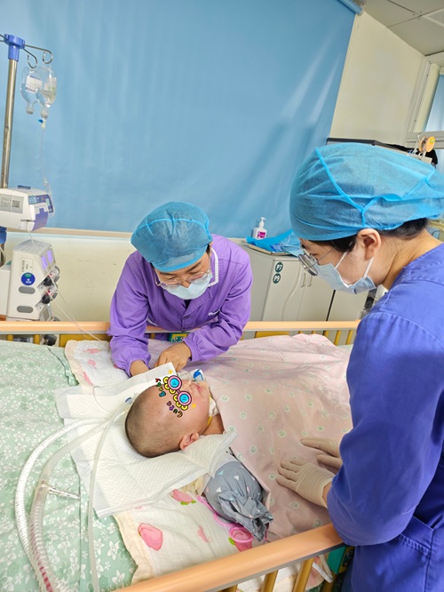 在临床救治的同时,医护团队关注患儿心理需求,轮班陪伴安抚,通过播放音乐、动画片等方式缓解其恐惧情绪。待病情稳定后,团队引导家属参与护理,以亲情陪伴支持患儿康复。