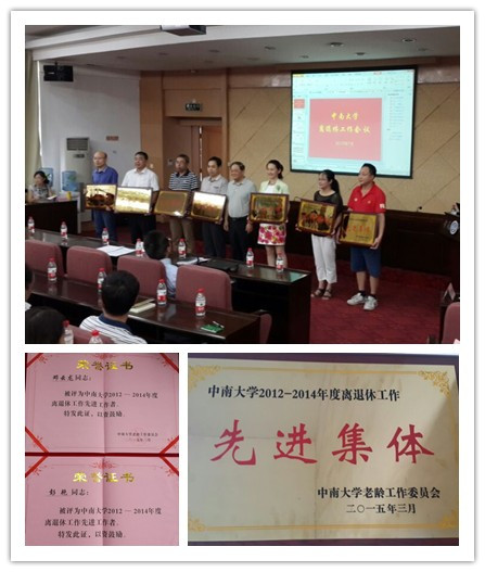 7月17日上午,中南大学离退休处举行离退休工作表彰会,我院喜获2012-2014年度离退休工作先进集体,邓云龙、彭艳获离退休工作先进个人。