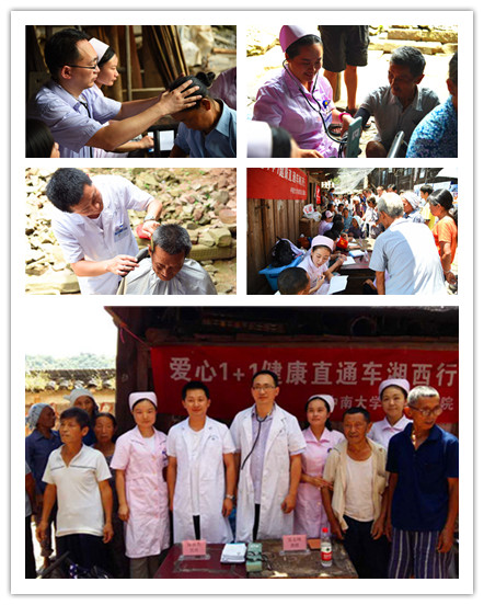 强虎村村长激动地说:"听说有湘雅医生过来义诊,我太高兴了,村里很多老人从来就没有走出过村子,一直以来都是用苗药进行自我治疗,治疗效果微弱。"心内科主任蒋卫红教授感慨:“大山里的居民,他们太困苦了,很多遗传病难以治疗。一般的疾病使用山药治疗,很少得到医院常规的诊治。”话语间蒋教授又埋头给村民开起了药方。外科的陈世杰医生说:“山里的人太苦了,他们有太多遗传病没法医治,人们的意识封闭,我一定要多开导开导他们。” 义诊后,志愿者又走访慰问了强虎村的村民。