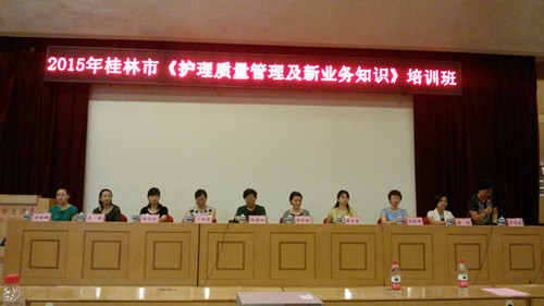 7月31日-8月2日,受广西桂林市卫生局、护理学会、桂林市三医院、桂林市五医院的邀请,湘雅三医院护理部主任丁四清教授率护理团队一行6人对桂林市两家医院实施护理帮扶,同时,在桂林市卫生局和护理学会举办的2015年“护理质量管理及新业务知识”培训班上进行专题讲座。