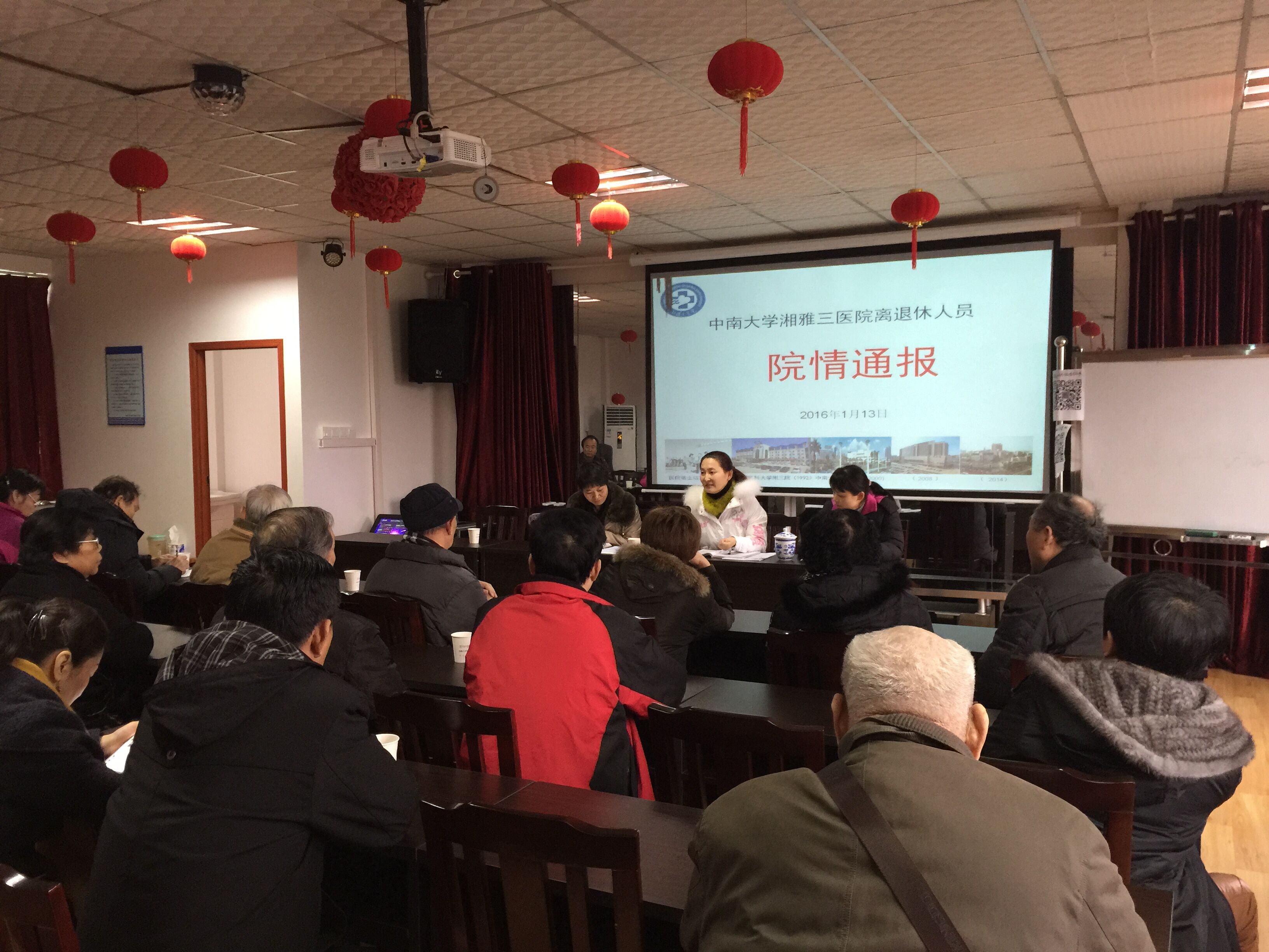 彭艳主任从管理和医疗方面介绍了医院管理重大举措、最新医疗技术等方面共12条信息。屈俊珍副主任介绍了离退休人员新春座谈会、医院团拜会的内容和举办形式。