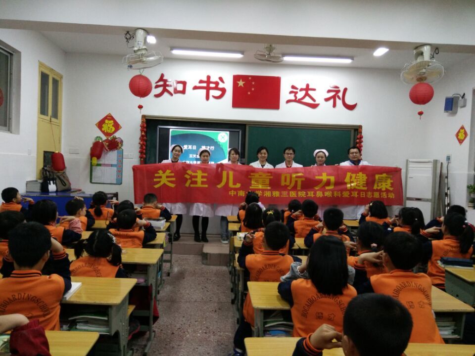 为迎接即将到来的第十七届全国爱耳日,2月29日晚,我院耳鼻喉科组建了由王天生副教授带队的七人医疗小队走进校园,进行儿童听力健康宣教,并在轻松互动的气氛中完成了孩子们的义诊。