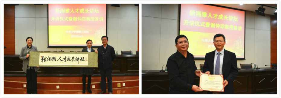 随后,“新湘雅人才成长讲坛”的首讲嘉宾,我院引进的海外高层次人才谢仲淙,做了题为《学者型医生在哈佛:挑战、机遇和激励》的精彩讲座。谢教授介绍了麻省总医院的医疗和科研现状及住院医师管理培训制度。他结合多年的学习、工作和成长经历,与在座师生分享了自身的奋斗历程以及作为一名学者型医生如何平衡临床实践与基础科研的经验体会。在现场互动环节,面对师生们积极踊跃的提问,谢教授都悉心回答耐心讲解,并激励大家把握机遇,迎接挑战。整个讲座内容深入浅出、引人入胜,让每位聆听者都受益匪浅。