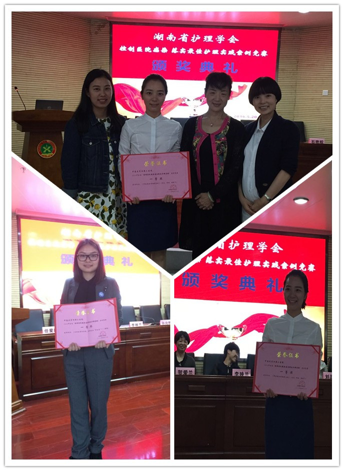 经过激烈角逐,我院泌尿外科薛娟主讲的《导尿管相关性尿路感染防控》及移植中心刘欢主讲的《移植感控的辐射实践》荣获一等奖;ICU余晓主讲的《呼吸机相关性肺炎的防控》及内科ICU汤观秀主讲的《降低ICU多重耐药菌感染率》荣获二等奖;普外一科邓琛主讲的《导管相关性血流感染的防控》荣获优胜奖。赛后,由湖南省护理学会理事长孙向明等领导进行了现场点评与颁奖。