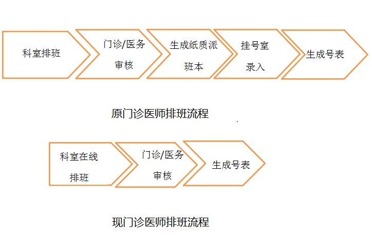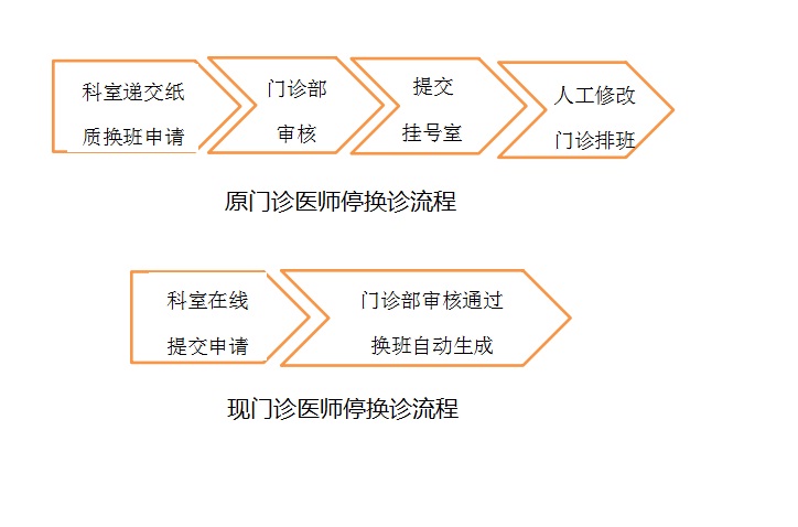 门诊排班新系统后台到前端没有多余的人工环节,杜绝了人工录入错误排班的发生,极大地提高了排班的准确率。门诊电子换班新系统除采用电子排班的流程外,还对违规换诊、停诊在程序上进行限制,达到了科学规范管理门诊换班的目的。