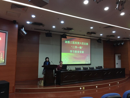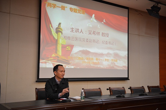 根据中央和学校党委的部署要求,按照医院“两学一做”的具体安排,连日来,中南大学湘雅三医院领导班子成员罗爱静、陈方平、吴希林、袁洪、朱晒红、黄进华、黄飞舟、邓云龙、杨飞龙,精心做好准备工作,创新方法,结合分管工作,率先到联系党支部主讲“两学一做”学习教育专题党课。5月底前医院领导班子成员全部完成“两学一做”专题党课主讲任务。
