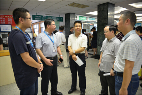 7月6日至8日,全国居民健康卡建设技术培训班在长沙举行,来自全国200余名负责居民健康卡建设的管理人员参加了培训。作为湖南省发行居民健康卡实现诊疗信息互联互通的唯一医院,参会全体代表于7日来我院学习参观,通过在门诊使用居民健康卡的具体诊疗流程演示,体现数据的互联互通以及业务协同共享。国家卫生计生委统计信息中心健康卡管理处李岳峰处长和湖南省卫生计生委信息统计中心黄德建副主任出席,杨飞龙副院长接待并欢迎来我院指导工作。
