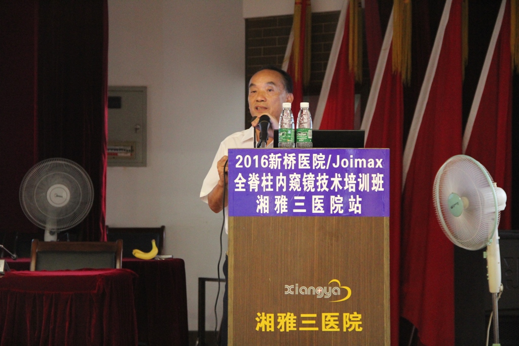 7月8日,由我院承办的Joimax全脊柱内窥镜技术培训班正式拉开帷幕。中南大学湘雅三医院张朝跃教授、中南大学疼痛医学研究所主任黄东教授、第三军医大学新桥医院李长青教授以及来自全国各地参加培训班的100余名骨科医生,共同探讨交流椎间孔镜技术。