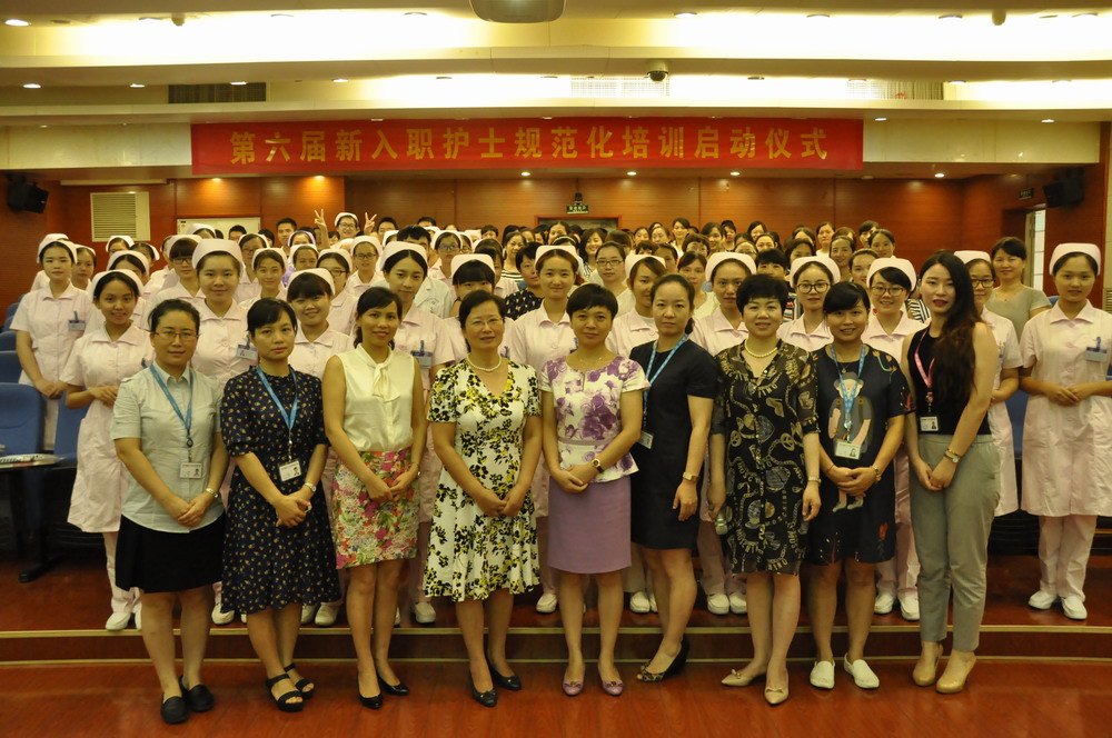 7月25日下午,第六届新入职护士规范化培训启动仪式在外科楼二楼学术报告厅隆重举行。主管院领导黄飞舟、2016年新入职护士、全体新护士导师、各科室培训组长、护士长及护理部成员200余人参加了本次启动仪式。