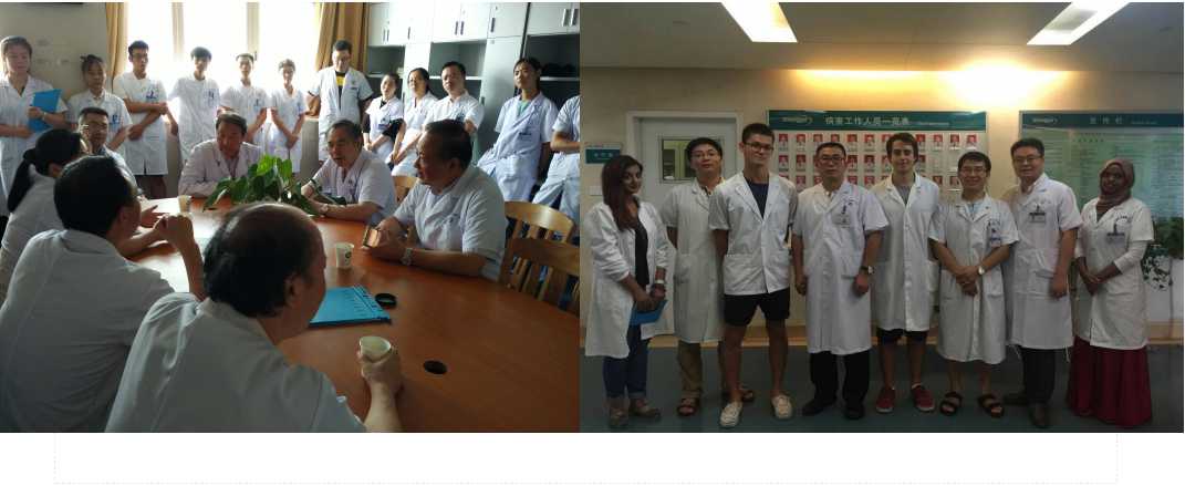 每周二肝胆胰外科都会进行由刘浔阳、黄飞舟等教授领衔的教学大查房和疑难病列讨论,在病例讨论中留学生们参与积极性非常高,每次也都能提出自己的见解。而在实习的最后一周,他们每人分别就肝胆胰外科的一种疾病为题,介绍了其所在国家该疾病的发病情况及诊治现状,其中以Edward介绍的Portal Hypertension、Eliot介绍的Acute pancreatitis和Gilbert介绍的Acute obstructive suppurative cholangitis令大家感触颇深,中西医疗和医学教育各有所长,值得我们相互学习与借鉴。