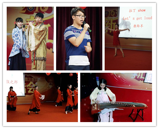 古筝《枉凝眉》和笛子《雨碎江南》的演奏让大家深深陶醉在优雅乐曲的无穷魅力中;摄影技巧的分享通过讲解如何调焦、选景、拍摄的小技巧,指导大家如何找到、记录生活中的美;热辣的拉丁舞让全体实习感受到年前人的青春蓬勃;带教老师米冬一曲《过火》让同学们热烈欢呼,看到湘雅三医院歌王的雄劲实力;传统与现代文化碰撞出热情的火花,展示了当代年轻人多才多艺与积极向上的生活热情。
