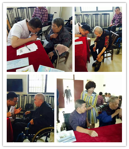 同时,另一诊室义诊台一字排开,义诊人员为每一位前来就诊的老人询问病史、量血压,田步宁医生为每一位前来咨询就诊的老人进行耐心细致的答疑及指导。发现问题,同行的护士做好记录,填写爱心反馈卡给敬老院的负责人员,并对老人们进行简单明了的健康宣教,对有需要的发放高血压、心脑血管疾病、糖尿病、呼吸系统疾病、泌尿系结石、前列腺炎等健康宣教资料。