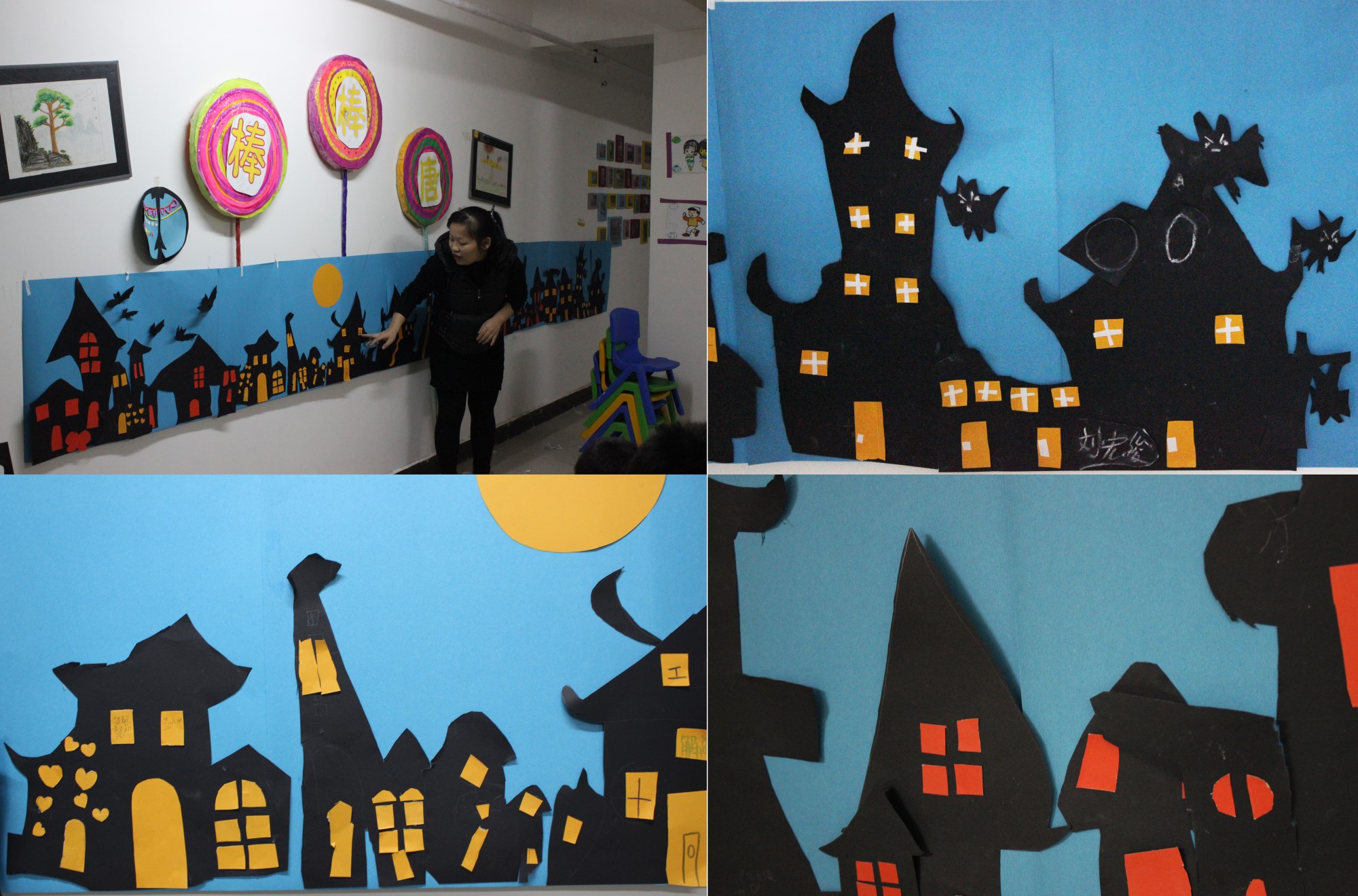 老师将孩子们的作品贴满了墙壁,变成了“城堡群”,问他们:一座城堡好看还是一群城堡好看?
