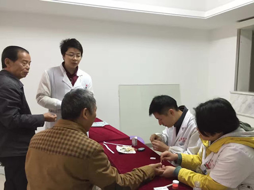 6组义诊小分队的5名同学在金茂梅溪湖小区给社区的爷爷奶奶们进行了常规的体检,包括测量身高体重、量血压、测血糖、心电图以及尿检。同时,同学们还向爷爷奶奶们介绍糖尿病与高血压的预防,包括日常饮食及运动的控制、定期监测血糖血压,以及如何确定是否已患有糖尿病及高血压,宣传了慢性病治疗的“早预防、早发现、早治疗”的管理理念。