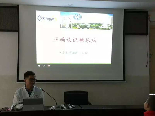 同时,6组“讲座小分队”的同学们派出舒常发同学作为代表,为一些参加围产期健康教育与咨询活动的人群进行糖尿病健康知识讲座,介绍了糖尿病、妊娠糖尿病及糖尿病防治的相关知识,讲座对糖尿病危险人群及预防措施进行了重点分析,获得了各位准妈妈及相关参加者的一致好评。讲座之后还进行了相关咨询及孕期检测血糖等活动,宣传了许多与妊娠及妊娠糖尿病的相关医学知识。