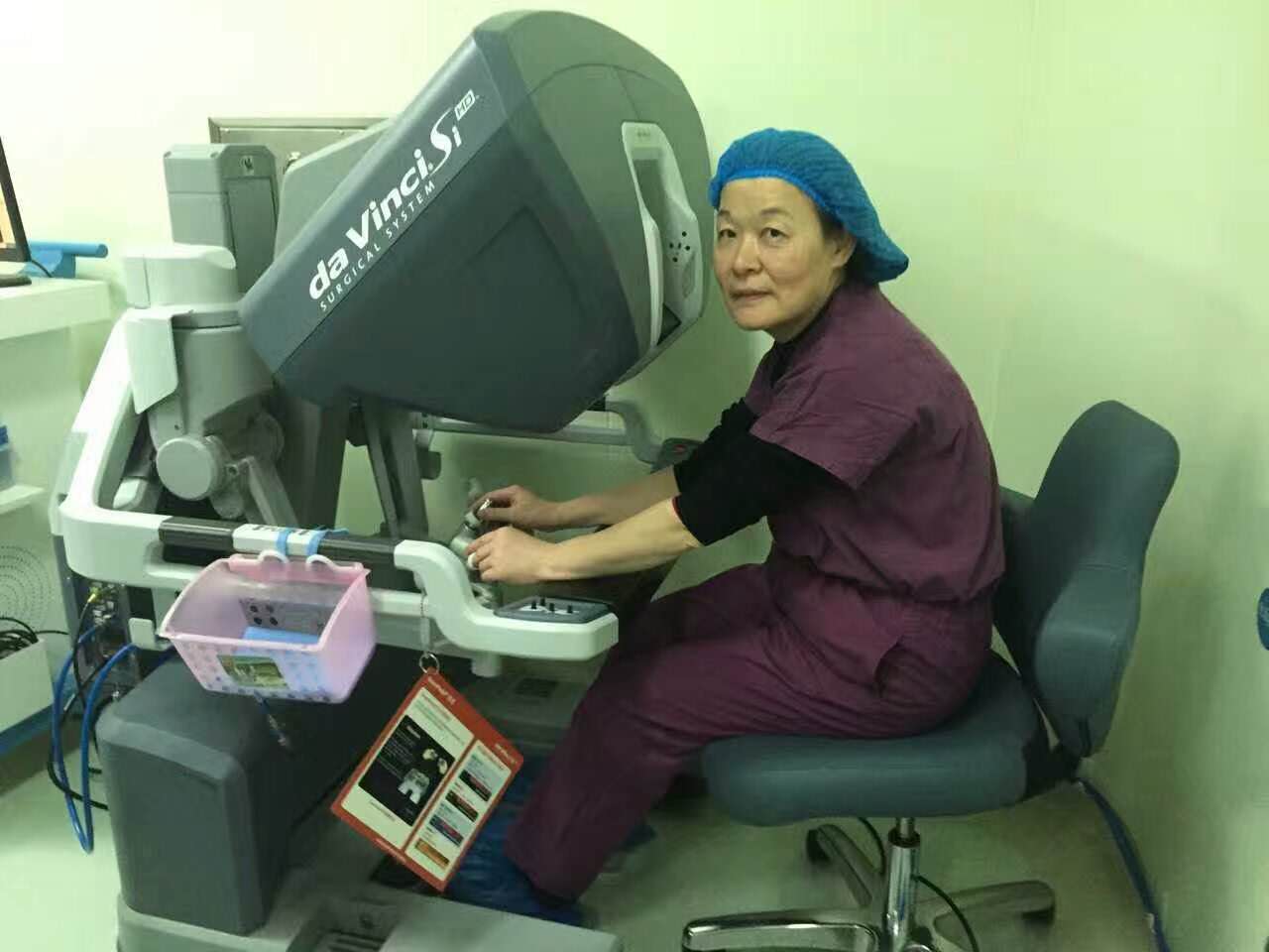 薛敏教授在操作达芬奇机器人