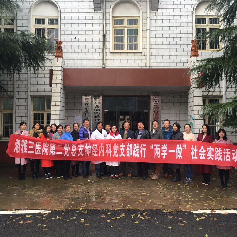 3月5日,为了引导医院青年职工继承优良传统,深入开展“两学一做”学习教育,发挥医疗机构和医务人员优势,发挥党员先锋模范作用,展示党员风采,践行群众路线,湘雅三医院第二党总支神经内科支部党员在支部书记宋治同志带领下,顶着暴雨,来到岳麓区含浦街道开展“践行‘两学一做’社会实践活动”。以实际行动诠释雷锋精神,将学习教育落到实处。