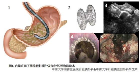 针对该难题,我院肝胆胰外科在省内率先开展了腹腔镜下腹膜后胰腺坏死物清创引流术(2009年开展湖南省首例)、超声内镜引导下胰腺假性囊肿内引流术(2012年开展湖南省首例,并获得中南大学医疗成果奖),积累了丰富经验,并建立了不同引流术式的病人个体化选择标准。
