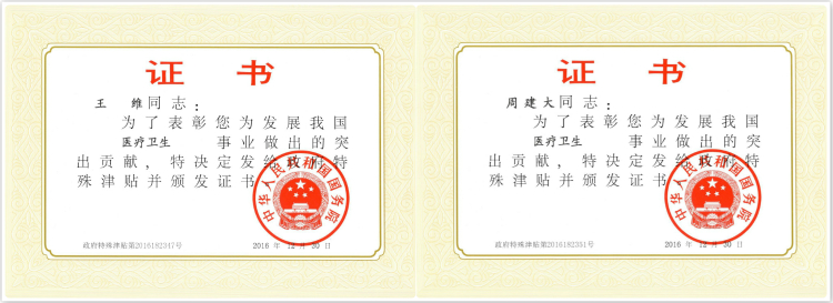 近日,人力资源和社会保障部公布了2016年享受“国务院政府特殊津贴”专家名单,我院放射科王维教授、烧伤整形外科周建大教授获此殊荣。2016年教育部直属高校、直属单位共有445名专家享受政府特殊津贴,中南大学共有10名专家入选。到目前为止,我院已有享受国务院政府特殊津贴专家14名。