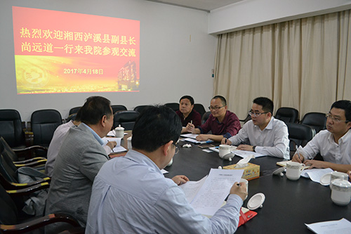 4月17日下午湘西花垣县副县长龙文斌等一行5人,4月18日下午湘西泸溪县副县长尚远道等一行7人来院参观交流,袁洪副院长和黄飞舟副院长分别在综合楼三楼会议室接待了湘西花垣县和泸溪县的贵宾。