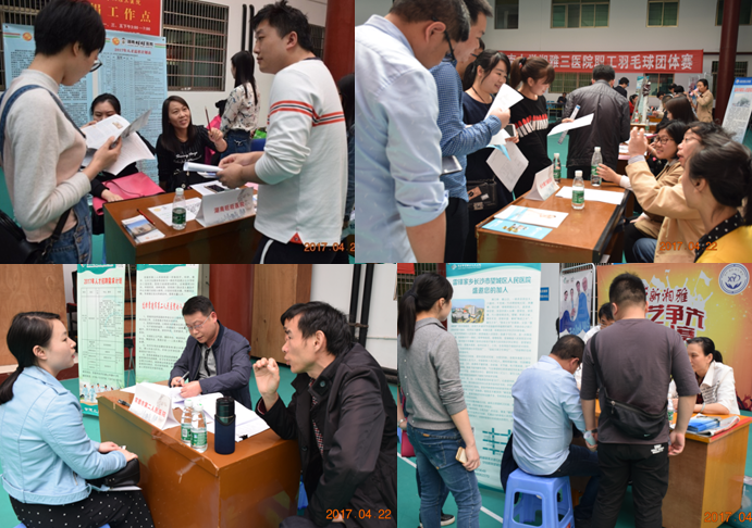4月22日下午, “2017年结业住院医师招聘会” 在湘雅三医院综合楼一楼中厅拉开了序幕。此次招聘会旨在服务住院医师以及用人单位,有助于今年即将结业的住院医师找到一份称心如意的好工作。