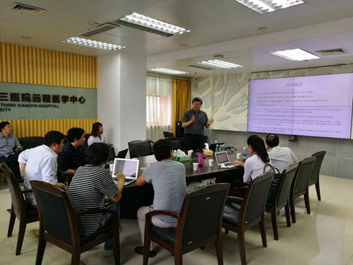 5月15日,中南大学肿瘤研究所曹亚教授及湘雅三医院临床大数据研究中心团队与上海交大-耶鲁联合生物统计中心联席主任、上海交大生物信息与生物统计系主任、上海市儿童医院生物医学信息中心主任吕晖教授,美国西北大学医学院HBMI及上海交大-耶鲁联合生物统计中心客座教授冯纲博士在湘雅三医院就有关临床大数据的问题导向、方法学研究、以及药物临床评价的相关前沿技术等方面进行了充分交流。