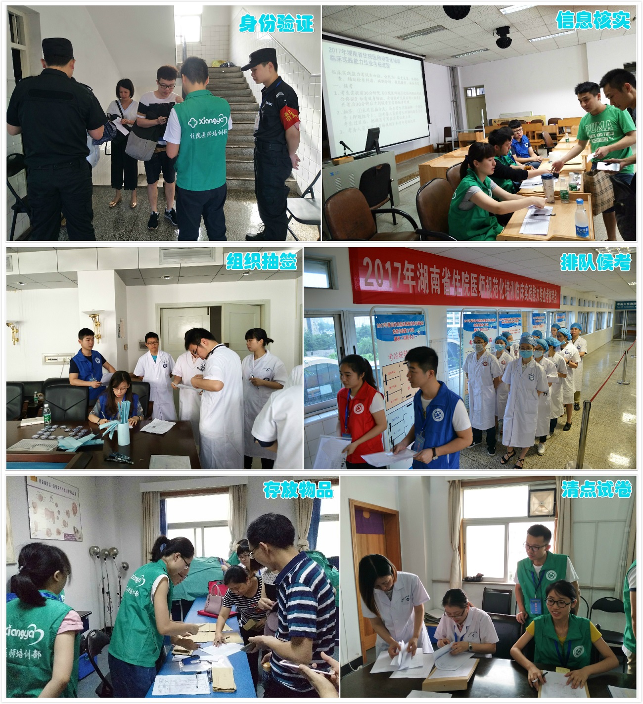 此次结业考核正值湖南汛期,在医院党委行政高度重视下,住院医师培训部、院办、党办、纪检监察办、临床技能中心、教务部、研究生部、党委宣传办、能源动力中心、急诊科、保卫科、后勤等多部门积极配合,全力以赴,克服天气、交通诸多不利条件,专车接送外地考官,提供完善的考场服务,以确保考官无忧执考、考生顺利参考,考试顺利进行。